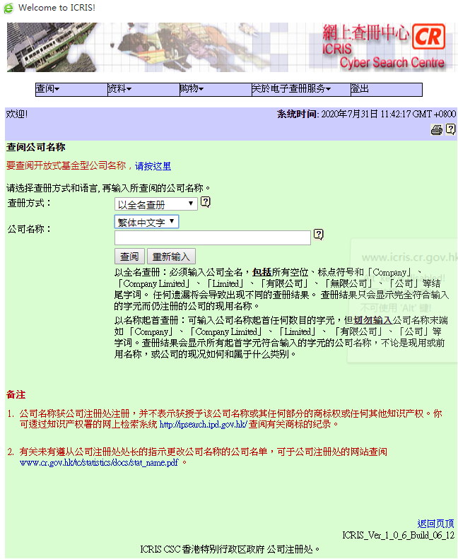 網(wǎng)上查詢香港公司信息流程