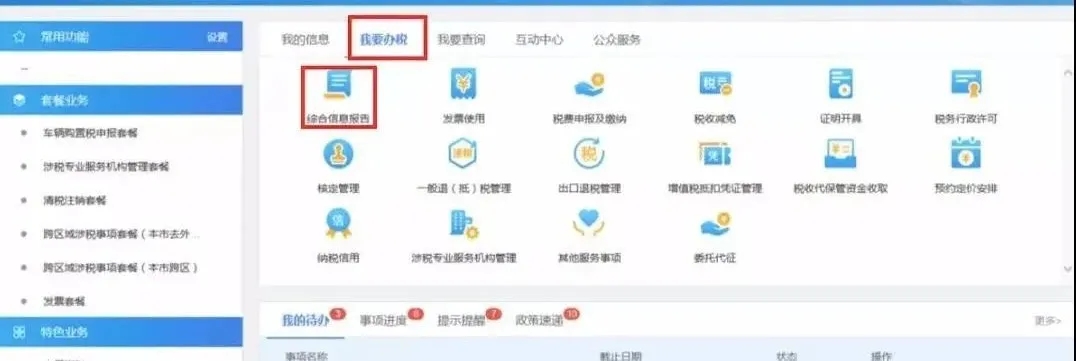 1、進入電子稅局,登錄到后臺系統(tǒng), 點擊我要辦稅,點擊綜合信息報告。
