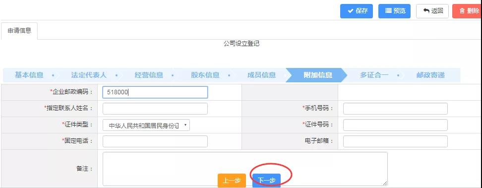第十一步:根據(jù)準(zhǔn)備好的注冊(cè)資料,填寫企業(yè)信息。