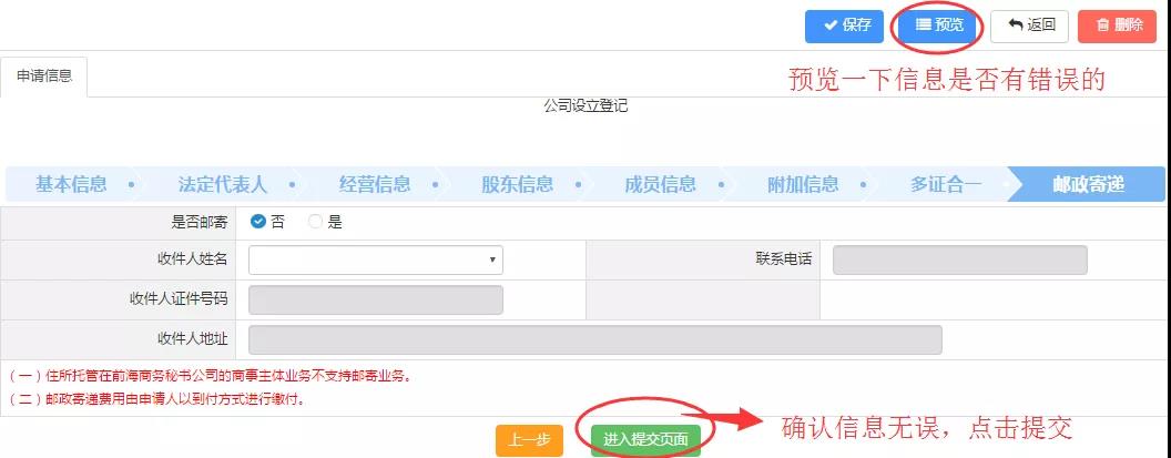 第十八步:確認(rèn)信息 點(diǎn)擊“提交”,注意:可選擇郵寄到注冊(cè)地址。
